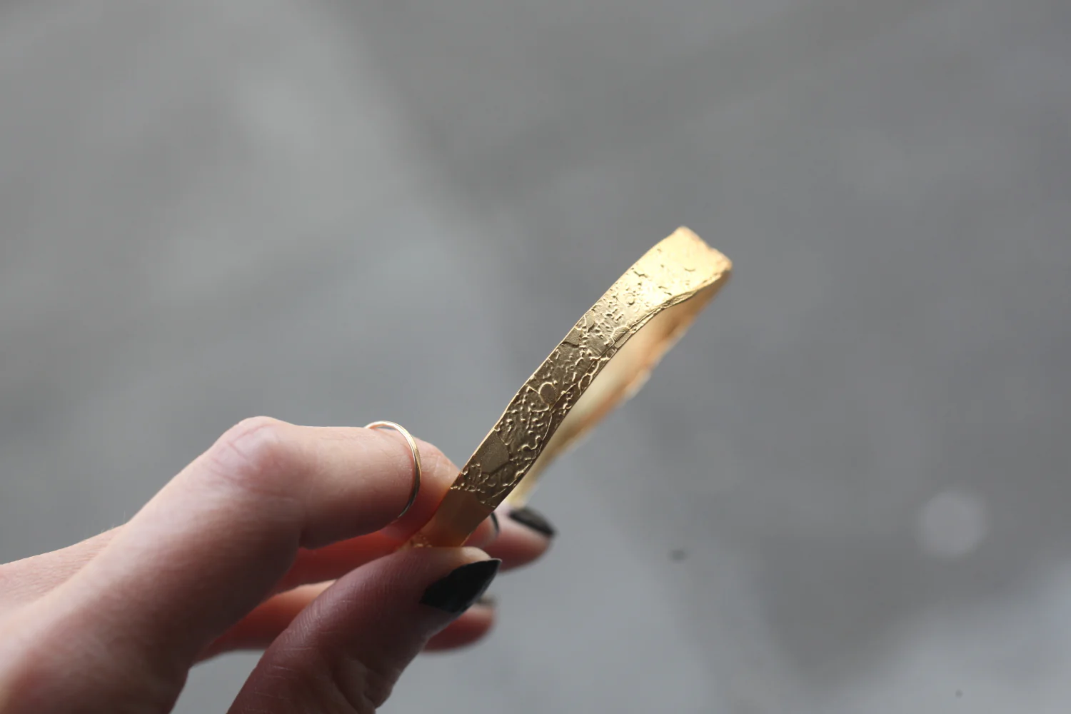 A signature technique — etched with intention so the trace of human touch remains visible. Each mark is deliberate, each imperfection sacred. It’s not just a finish, but a fingerprint: a quiet stamp of uniqueness that makes every piece unmistakably its own.