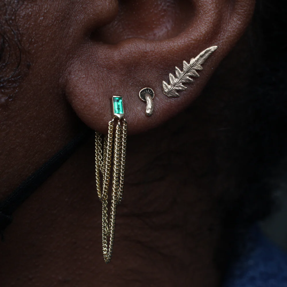 Like all chandeliers, it’s a place where light chooses to scatter — boldly, beautifully. Here, it does so through cascades of solid gold chains, draped from an white diamond baguette. A quiet spectacle. A radical shimmer.