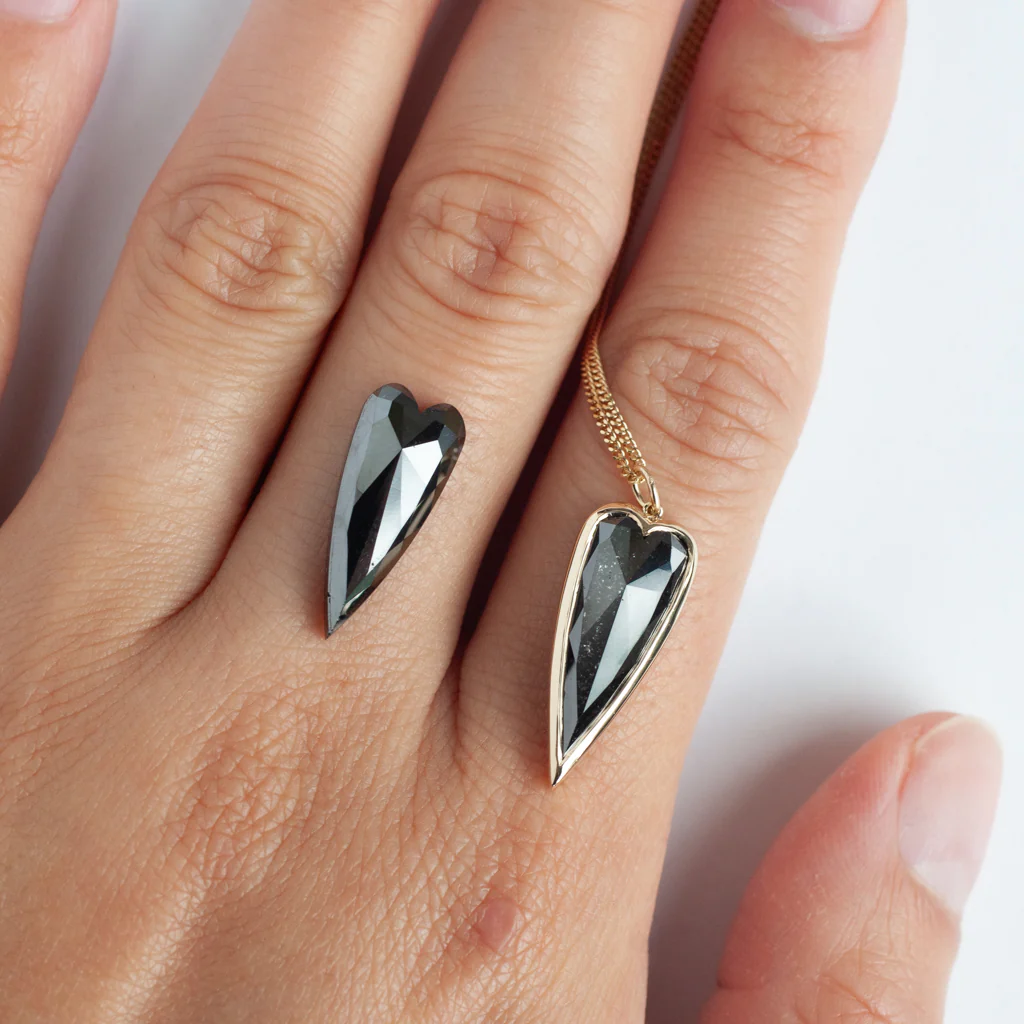 The heart reimagined — stretched into a long, lean black diamond that cuts through convention with surgical grace. More blade than bauble, more sigil than sentiment, it’s a talisman of radical devotion. This is love without apology: exacting, radiant, and rare. It doesn’t whisper. It declares. Punk Heart is not a symbol of softness — it’s a vow made sharp.
