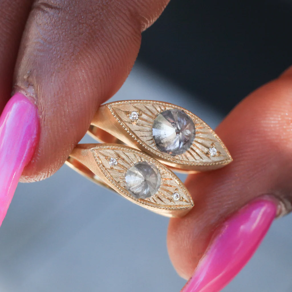 Petite Third Eye Ring - Salt & Pepper Diamond